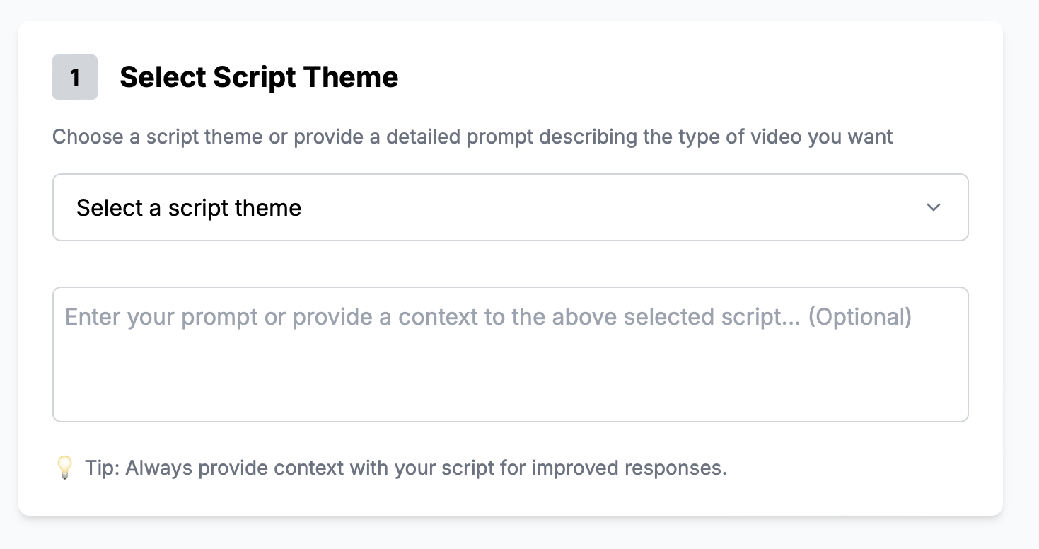 Choose a topic for your Video. You can pick from our suggestions or write your own and our AI will generate scripts for you.